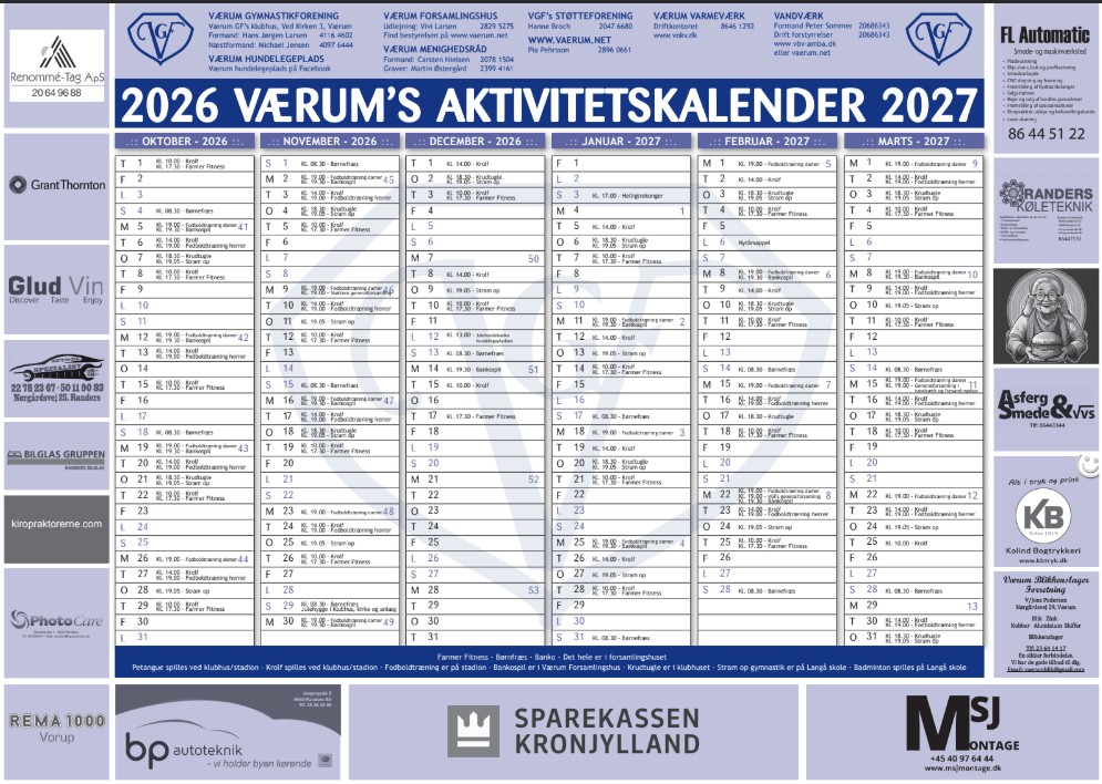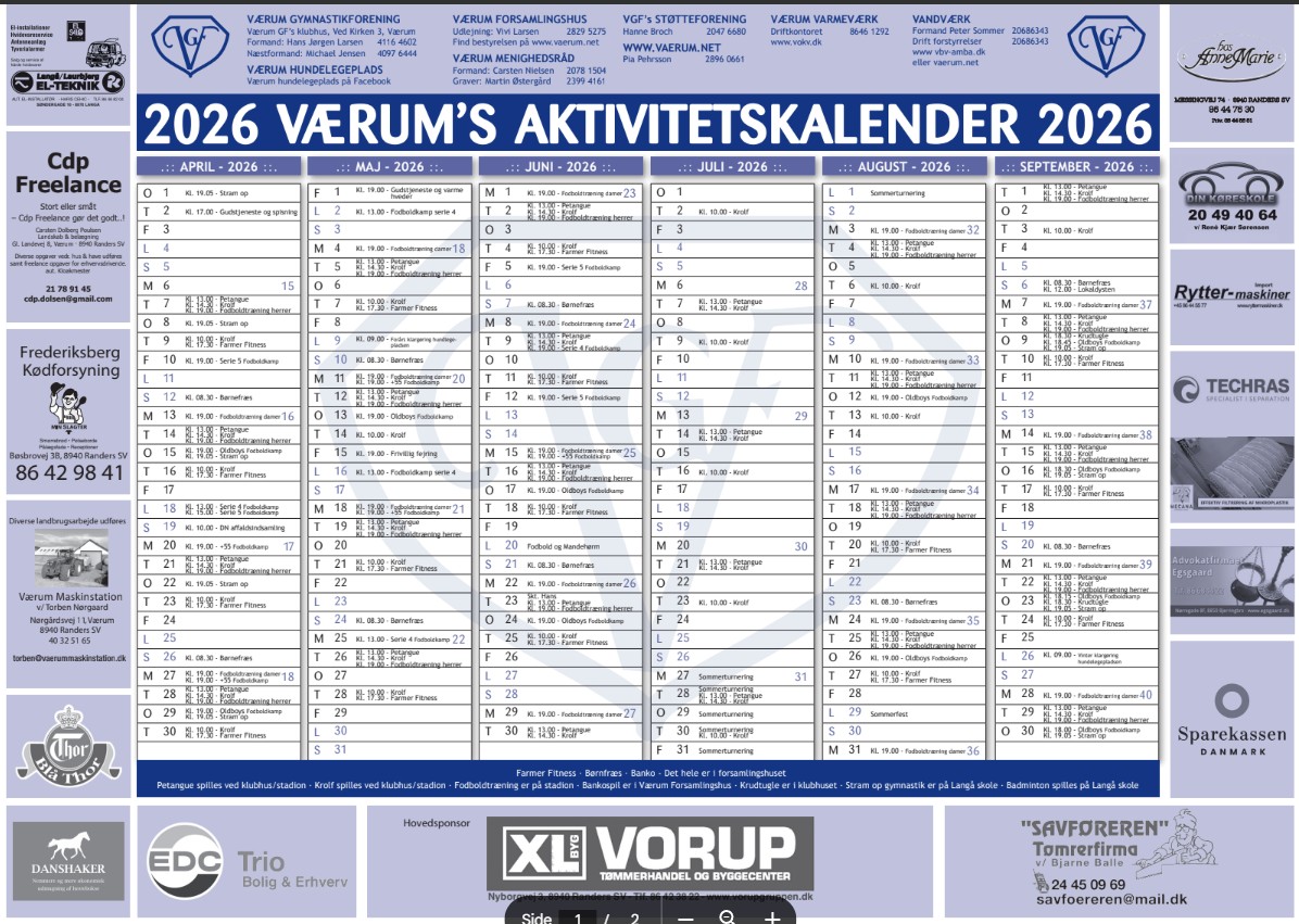 Har du kigget i postkassen for nylig? Der skal gerne ligge et nyt klubblad fra Værum GF og en kalender med byens aktiviteter.